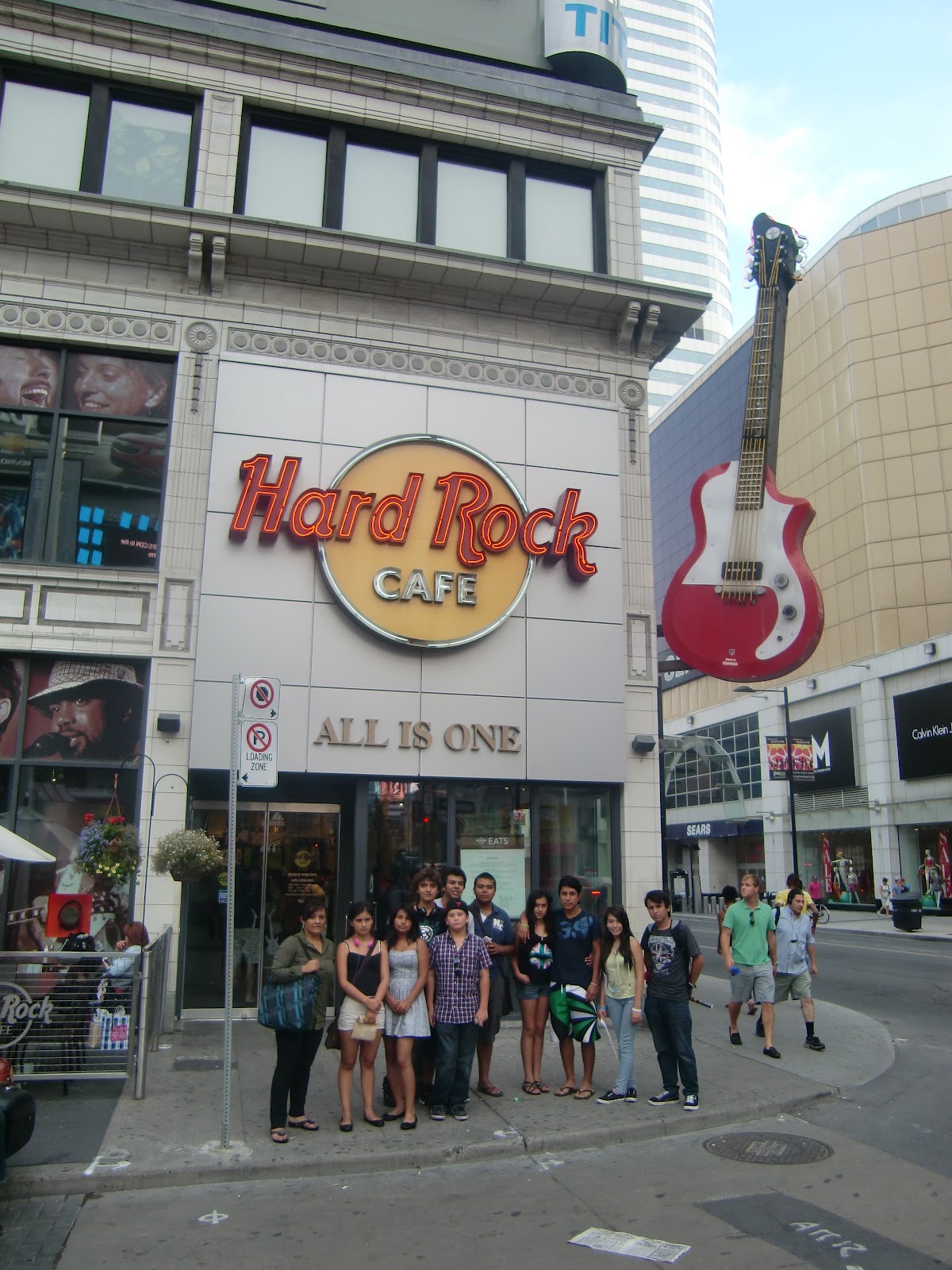 We've reached that time of the summer when we're having to start saying goodbye! After four fantastic weeks in Canada, our Colombian group departed early this morning. Although they were one of our smaller groups, they made a big splash at Quest, and they will definitely be missed by students, teachers and Quest staff alike. Before they left, we sent them off in style with a farewell party at the famous Hard Rock cafe, where they celebrated the great memories they made in Toronto.